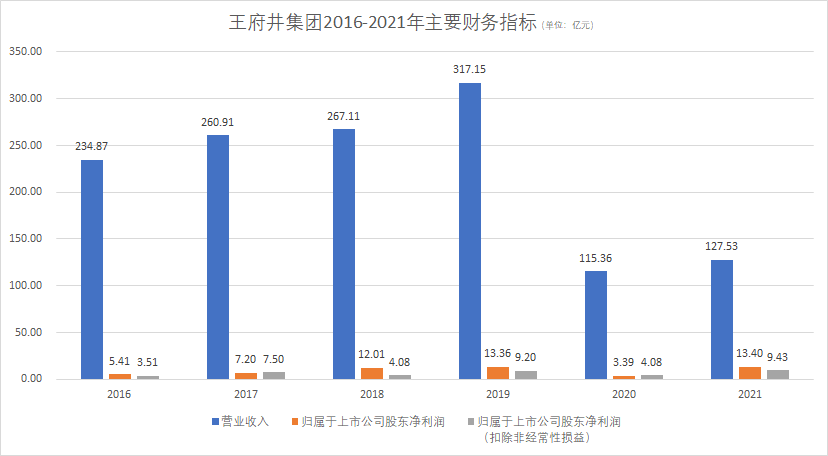 而从近年来王府井的业绩来看,2016年-2019年其业绩提升较慢,且2020年受疫情影响极为严重。百货业衰退加上疫情侵袭,王府井的转型之路走得磕磕绊绊。