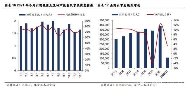 疫情反复下适应性增强,中长期恢复趋势不变。根据汇客云数据,2021H2疫情反复比较频繁,但和以往的市场表现有所不同,犹以疫情后修复时间缩短较为突出,主要体现在客流恢复指数整体呈上升趋势,表明城市应对突发疫情的适应性增强,消费者对于疫情的恐慌情绪减弱。2021年全国社零总额为44.08万亿元(+12.5%),零售市场回暖。2022年至今疫情反复仍在持续,短期会对零售业造成一定冲击,但不改中长期修复趋势,2022Q1全国社零总额为10.87亿元(+3.3%)。