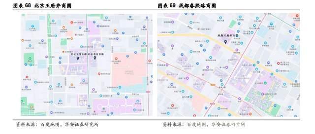 (2)1996年公司开始推进百货连锁战略,在全国布局百货商场,通过聚客和集群效应,百货商场所在地逐步发展成为核心商圈,比如成都王府井百货所在的春熙路商圈、武汉王府井百货所在的江汉路商圈,商圈的繁荣也进一步提升了王府井百货的品牌力和客流量。