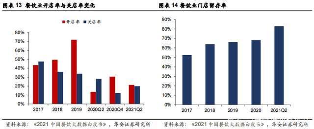 疫情初期线下出现闭店潮,常态化后平稳复苏。2020年受突发疫情以及居家隔离防疫政策影响,部分线下消费场景消失,出现了大规模闭店潮,根据《2021中国餐饮大数据白皮书》,2020Q2餐饮门店规模同比下降14.4%,关店率达28.0%,远高于13.6%的开店率;随着2020年下半年疫情疫情转淡,线下消费迅速恢复,2020Q4开店率达30.5%,远高于12.2%的关店率。一方面体现出疫情防控得力对经营环境的环比修复,另一方面体现了被动补偿性开店的特征。