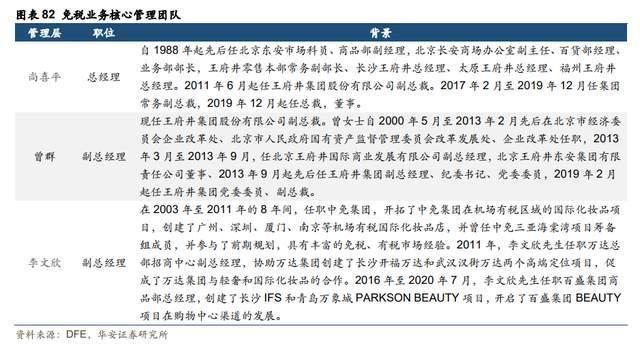 核心管理层高效专业,经验丰富。公司2020.6获得免税经营资质,2020.7成立北京王府井免税品经营有限责任公司,并筹建核心管理团队: