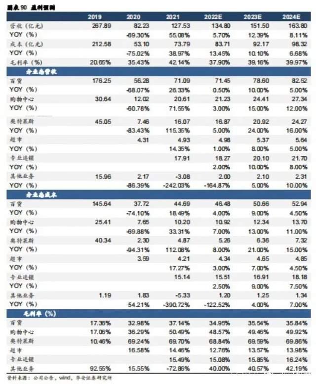 ①百货业务门店逐步调改升级,迎合Z世代消费需求,吸引新流量,预计疫情稳定后增速会略有上升。