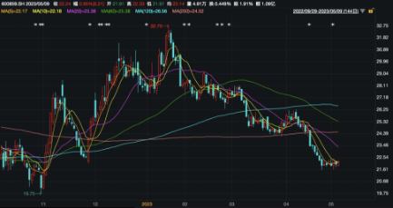 二级市场上,2022年四季度王府井低位震荡,整体出现一定程度反弹。进入2023年,该股走势向下,截至5月4日收盘,王府井报收于21.92元/股(前复权,下同),较今年年初股价最高点32.75元/股已下跌33%。5月8日,王府井股价收于22.03元/股,日跌幅1.61%。