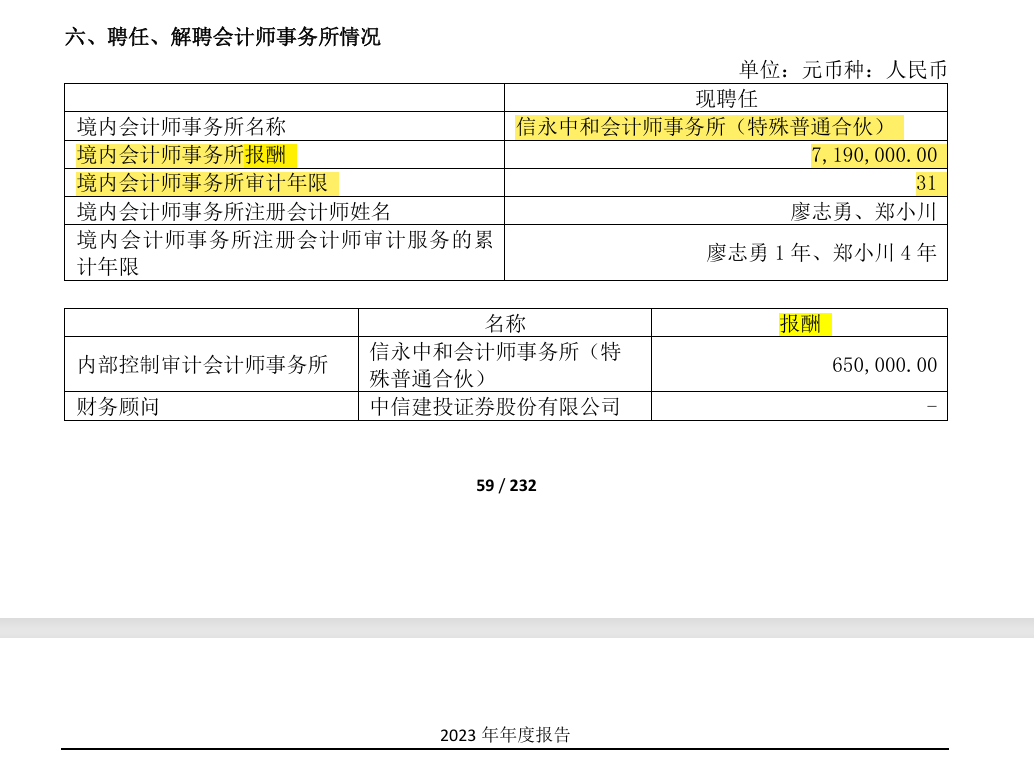 2023 年度,信永中和对公司出具了标准无保留意见的审计报告。目前,信永中和正在进行公司2024年年度审计工作,尚未出具审计报告。公司不存在已委托前任会计师事务所开展部分审计工作后解聘前任会计师事务所的情况。