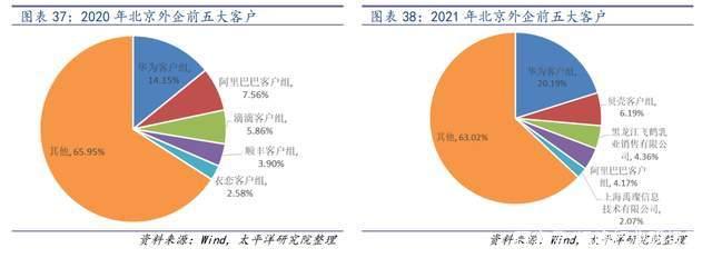 2021年北京外企前五大销售收入客户来源为:华为客户组、贝壳客户组、黑龙江飞鹤乳业销售有限公司、阿里巴巴客户组、上海禹璨信息技术有限公司,前 5 家客户销售收入占总销售收入高达36.98%,销售收入来源较为集中。且头部客户多为国内各行业龙头企业,回款能力强。