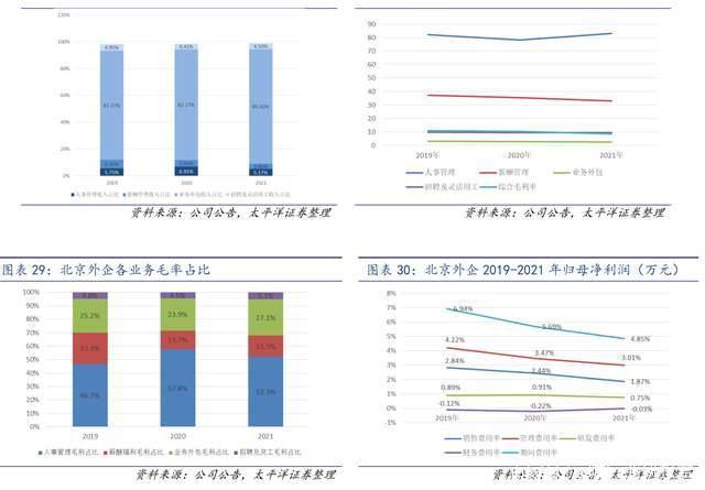 图表 33:人资企业主营业务对比图表 34:北京外企、外服控股各业务毛利率对比