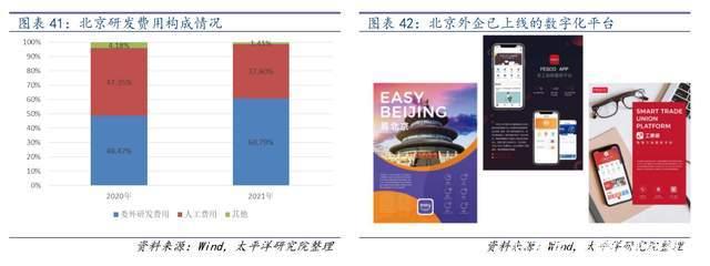 从北京外企的研发费用构成看,2020年和2021年委外研发费用占比为48.47%和60.79%,人工费用占比分别为 47.35%和 37.8%。