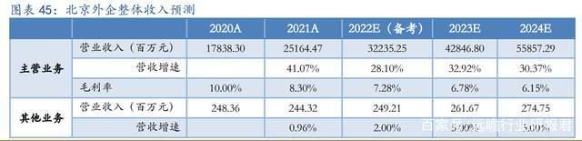 预计2022-2024年北京外企将实现归母净利润 7.07 亿元(备考)/8.37亿元/9.57亿元,同比增速 15%(备考)/18.4%/14.3%。