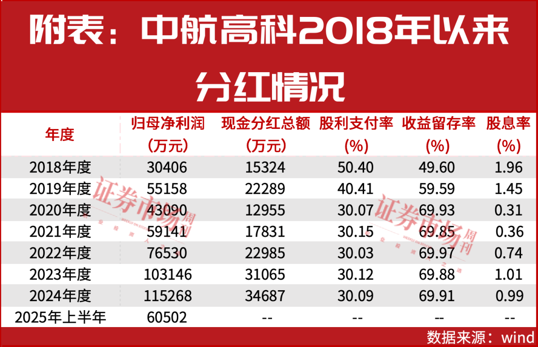 值得一提的是,业绩的稳定增长为提升投资者回报奠定了基础。Wind显示,中航高科2018年度、2019年度的现金分红比率分别为50.4%、40.42%,2021年以来的年度现金分红比例基本维持在30%左右。