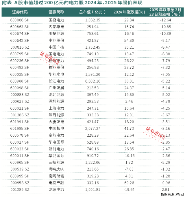 不过,相较出色的分红表现,据数据显示,内蒙华电在A股电力板块诸多个股中的表现却相对较差,不仅2025年以来股价下跌了10%,且在A股80多只电力股中走势仅强于西昌电力(今年跌幅16%)、国投电力(今年跌幅13%)等5家公司。