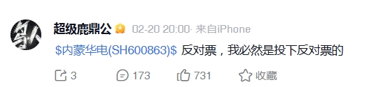 对于此次并购,有部分中小投资者表达了不同意见。比如有着38.4万粉丝的雪球论坛知名用户@超级鹿鼎公发帖表示,将在内蒙华电的股东大会表决时“投下反对票”。为打消投资者的担忧,内蒙华电在2月24日的最新公告中表示,北方联合电力为“维护广大投资者利益”,主动承诺把定增获得股份的锁定期从3年延长为5年。