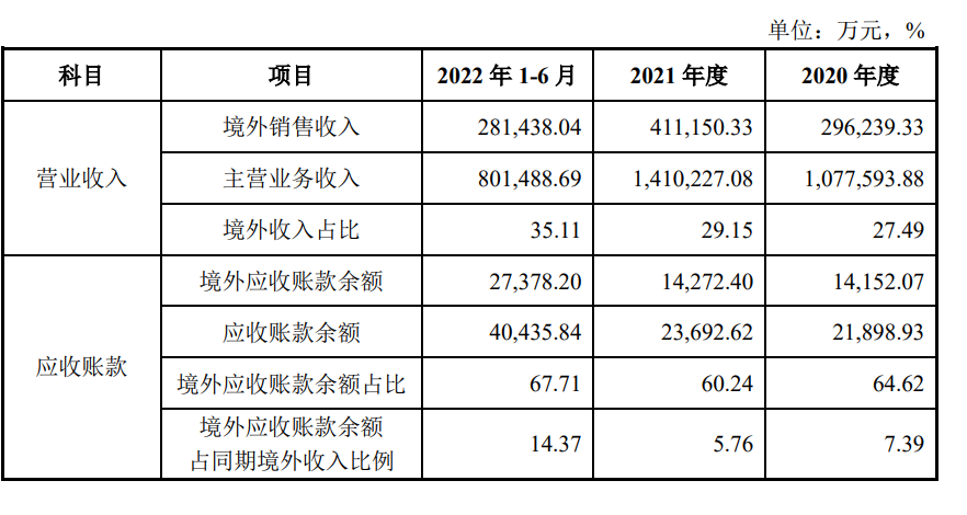 此次关于境外销售业绩的调查同样具有重要意义。据星湖科技披露的调查报告显示,2020年度、2021年度、2022年1-6月,伊品生物境外销售收入分别为 296,239.33 万元、411,150.33 万元和 281,438.04 万元,境外销售收入占主营业务收入的比例分别为27.49%、29.15%和 35.11%。
