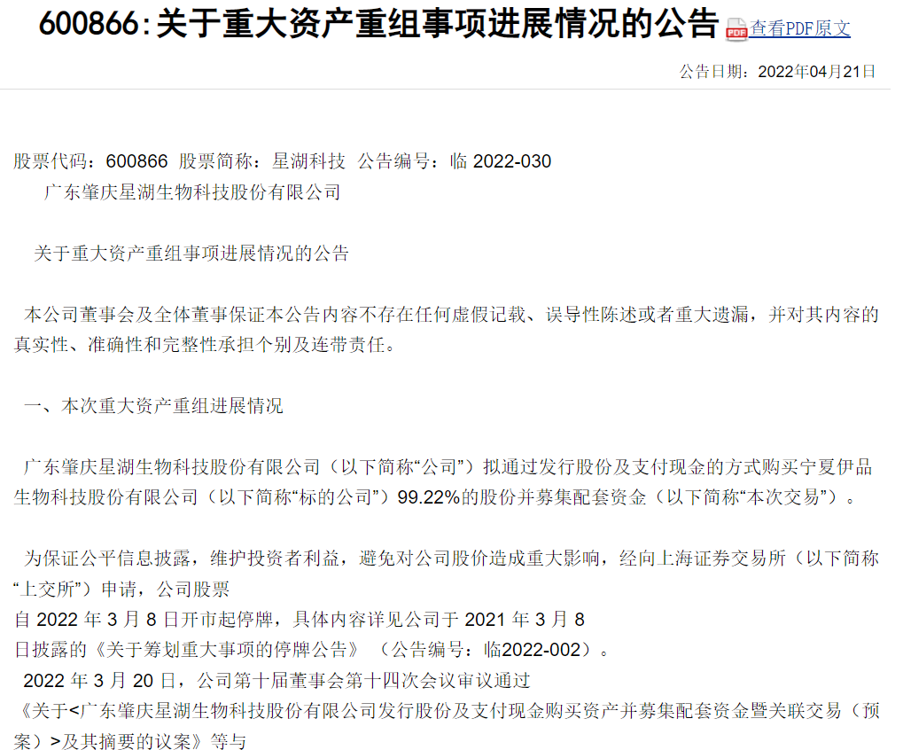 仅隔一天之后,星湖科技一连发布多条公告,披露“蛇吞象”式并购伊品生物新进展。对于星湖科技而言,这两天还真的是有点忙!