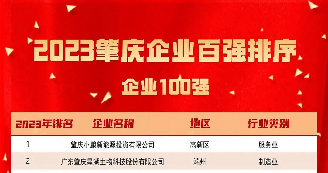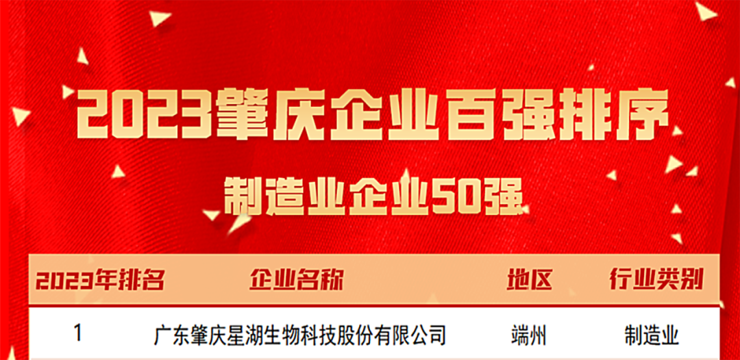 8月25日,肇庆市企业联合会、肇庆市企业家协会联合发布了2023年“肇庆企业100强”等4份榜单,星湖科技以174.86亿元营业收入位列“2023肇庆制造业企业50强”第一、“2023肇庆企业100强”第二、“2023肇庆科技创新企业50强”第七,标志着公司综合实力跃上新台阶,在高质量发展征程上迎来更加广阔的发展前景。