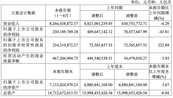 星湖科技8月28日公告,2023年上半年营业收入82.66亿元,同比下降6.29%;归母净利润2.30亿元,同比下降43.81%。