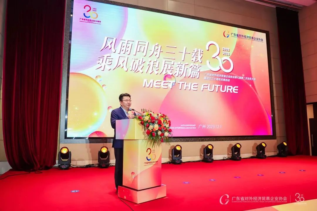 广新集团党委委员、副总经理、星湖科技董事长刘立斌出席大会并代表广新集团作为会长单位致辞,向广东省对外经济贸易企业协会成立30周年表示热烈祝贺。他表示,站在世界500强的新起点,广新集团将继续与广东省对外经济贸易企业协会共进退,发挥国企力量,增强产业链、供应链的韧性与稳定,塑造广东外贸竞争新优势,在推动高水平开放、助力开放型经济、服务高质量发展上持续贡献广新力量。