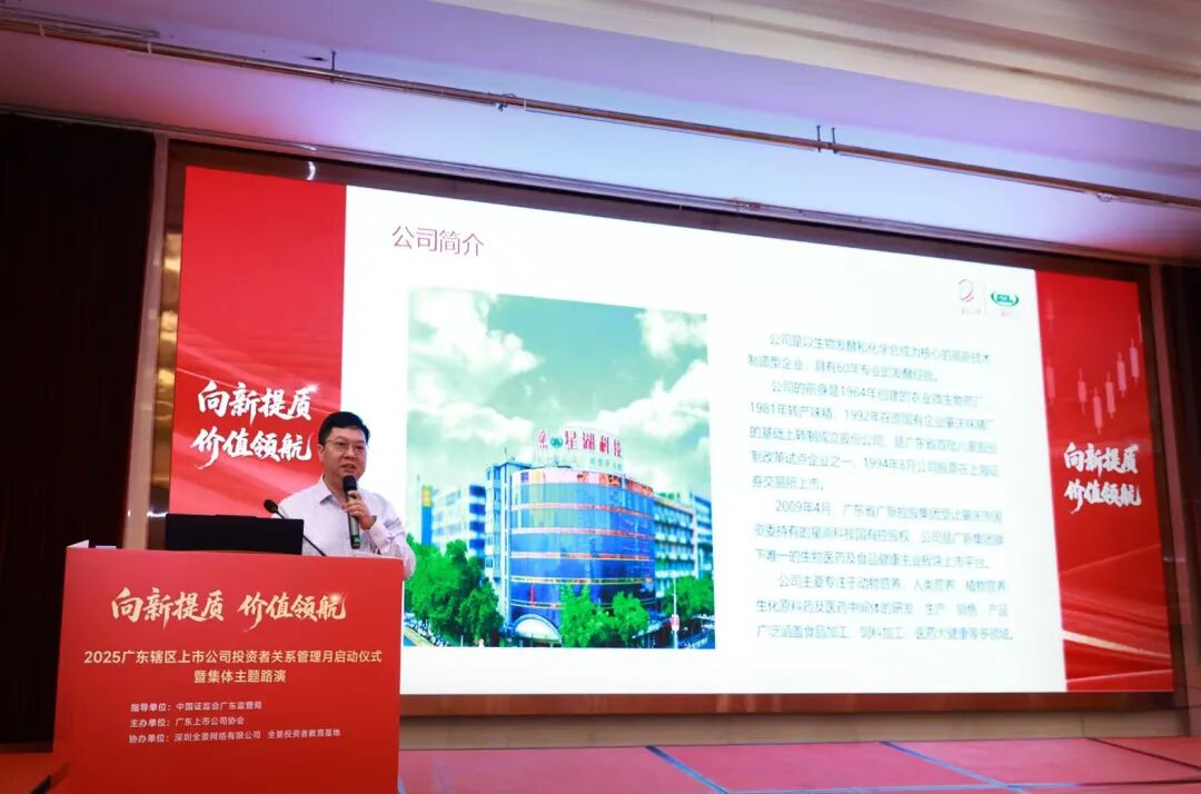 集体路演环节,广东肇庆星湖生物科技股份有限公司(股票代码:600866,简称“星湖科技”)作为优秀代表企业受邀发表专题演讲,重点分享了如何通过战略布局与研发创新来培育新质生产力,并驱动业绩增长与股东回报增加,实现公司价值提升。
