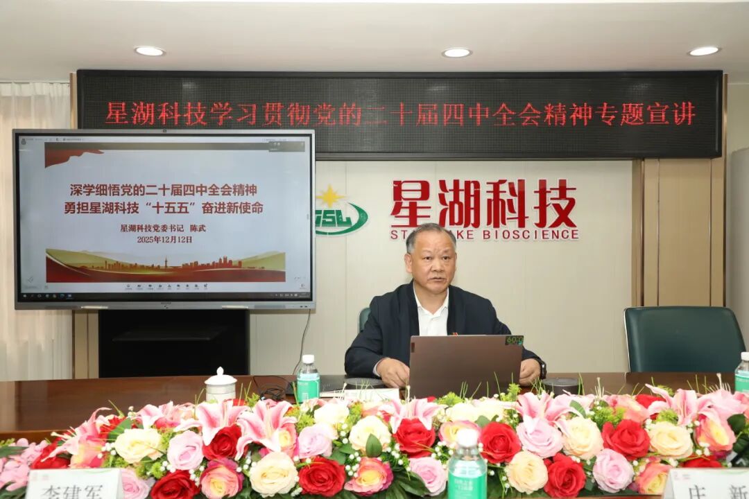 会上,公司党委书记陈武结合公司发展实际,以“深学细悟党的二十届四中全会精神,勇担 星湖科技 ‘十五五’奋进新使命”为题作主题宣讲,对全会精神作了全面解读和工作部署。他强调,要深学细悟全会精神,紧密结合企业实际,创造性地抓好落实,奋力开创公司“十五五”时期高质量发展新局面。一要坚持战略引领,高质量编制好“十五五”规划。二要聚焦年度目标,奋力夺取“十四五”收官之战全面胜利。各级领导干部特别是党员领导干部要率先垂范,一线生产经营单位要冲锋在前,总部各职能部门要担当尽责。三要坚持改革强企,塑强企业核心竞争力。四要强化党建引领,深化党业融合赋能全局,织密建强基层组织体系,将党建工作融入公司生产经营各环节全链条。