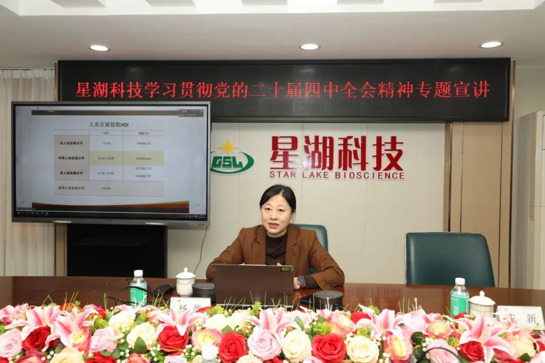 为全面贯彻落实党的二十届四中全会精神,奋力夺取“十四五”圆满收官,迎接“十五五”崭新开局, 星湖科技 于12月12日举办学习贯彻党的二十届四中全会精神宣讲报告会,特邀中共肇庆市委党校专家开展专题辅导,公司党委书记陈武结合公司实际面向中层管理人员、党员开展专题宣讲。