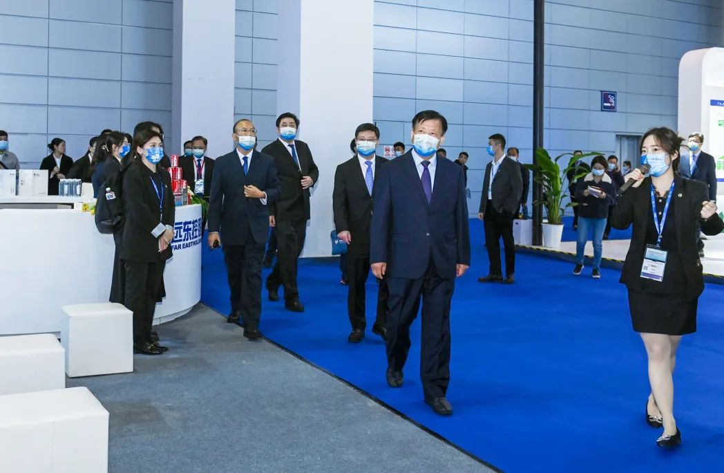 方伟、吴新雄、杜小刚、赵建军等领导一行在远东股份展台前参观考察,听取远东股份在产业布局上的发展情况及未来展望。