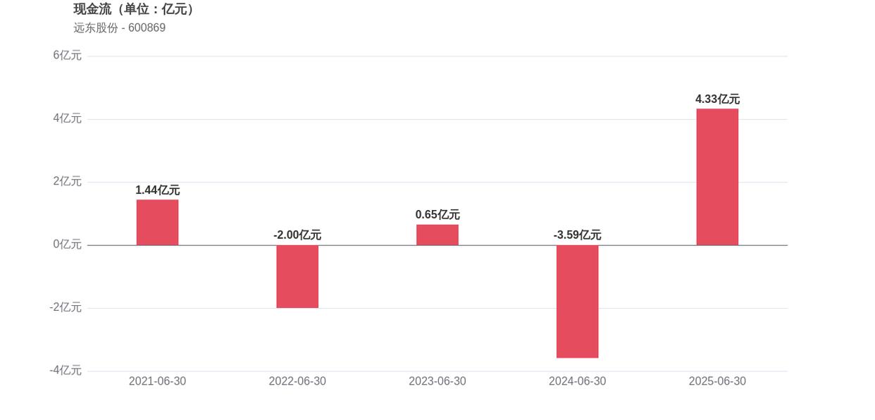 在经营稳健性方面,远东股份面临运营效率提升的积极变化,存货周转天数为48.24天,较2024年上半年下降了4.25%,表明库存管理效率有所改善。经营活动产生的现金流净额为4.33亿元,相比2024年同期的-3.59亿元,实现了由负转正,显示出公司现金流状况的明显好转。此外,2025年上半年的资产负债率为78.98%,同比下降了0.02个百分点,这意味着公司负债结构保持相对稳定。
