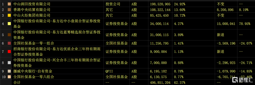 截至4月9日,张坤管理的易方达中小盘混合、易方达蓝筹精选混合、易方达优质企业三年持有混合均出现在中炬高新前十大股东名单中,合计持有中炬高新约7400万股股份,占该公司总股本比例达9.29%,较去年四季度末持仓合计增持5350万股。
