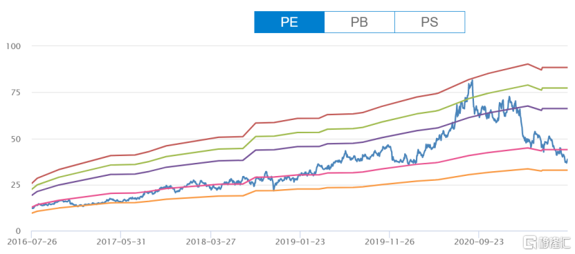在中炬高新去年股价最高点附近PE也高达80倍左右,伴随着一季度基本面预期的持续恶化,这样的高估值最终没能经受住高增长的检验,那么一路下跌杀估值自然也是情理之中。