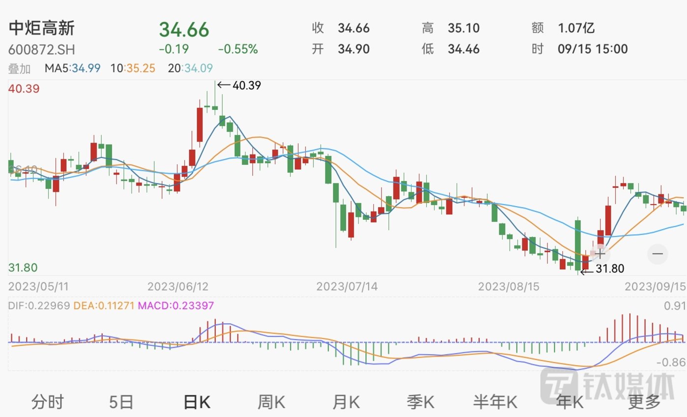 二级市场方面,截至9月15日收盘,中炬高新股价报收34.66元,跌0.55%,成交额为1.07亿元,当前公司总市值约272.21亿元。(本文首发于钛媒体 APP,作者|陈伟纳)