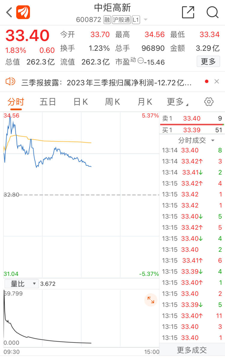 二级市场方面,或因高管变动影响,中炬高新10月19日上午股价逆势上涨,一度涨超5%,午后涨幅有所收窄,截至发稿,报33.40元/股,上涨1.83%,总市值262.32亿元。