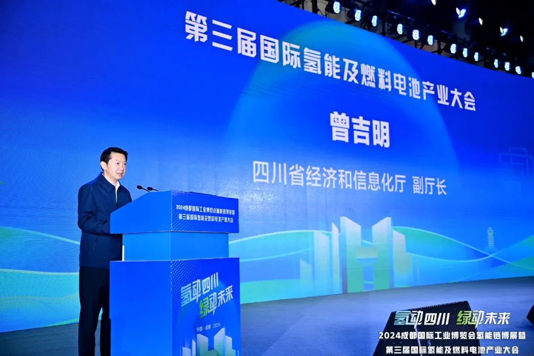 曾吉明在致辞中指出,四川是清洁能源大省,发展绿氢潜力巨大,通过十余年的深耕努力,已形成氢能“制—储—运—加—用”全产业链布局。四川省将全面整合各级各部门力量,以超常规举措、最大力度,精准支持产业高质量发展,加快构建起水风光氢天然气多能互补发展的新型能源体系,为国家能源安全贡献更大力量。