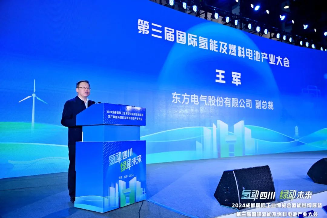 王军在致辞中指出,东方电气将氢能作为发展绿色低碳产业的重点,经过十余年的深耕和培育,现已形成涵盖制氢、储运氢、加氢、氢燃料电池及氢能综合应用的氢能全产业链解决方案提供商,并在大功率电解水制氢、海水无淡化原位制氢、高压储氢、车用燃料电池、发电燃料电池及氢能五联供等方面形成标志性产品。未来,东方电气将加大投资力度,强化核心技术攻关,增强氢能优质产品的供应能力,携手同行共商氢能产业发展之路。
