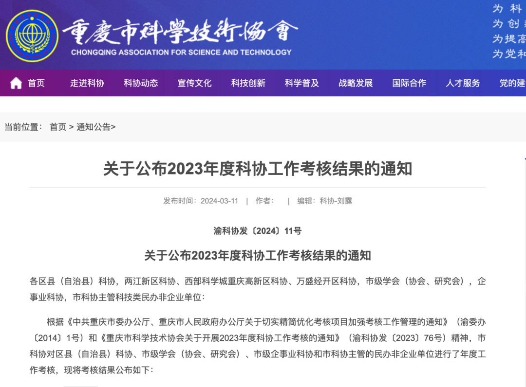 近日,重庆市科协对区县(自治县)科协、市级学会(协会、研究会)、市级企事业科协和市科协主管的民办非企业单位进行了年度工作考核,电科芯片科协入围一等名单。