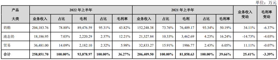 尽管营收净利双增,但这一增速相比于2021年同期大幅放缓。营收受疫情影响仍然保持双位数增长,虽然受到疫情对线下消费的影响,但以奶酪棒为代表的即食营养系列产品中,低温品类凭借产品迭代升级、品质不断提升,常温品类通过渠道拓展及场景破圈,进一步获得消费者的高度认可,依然取得不错增长。