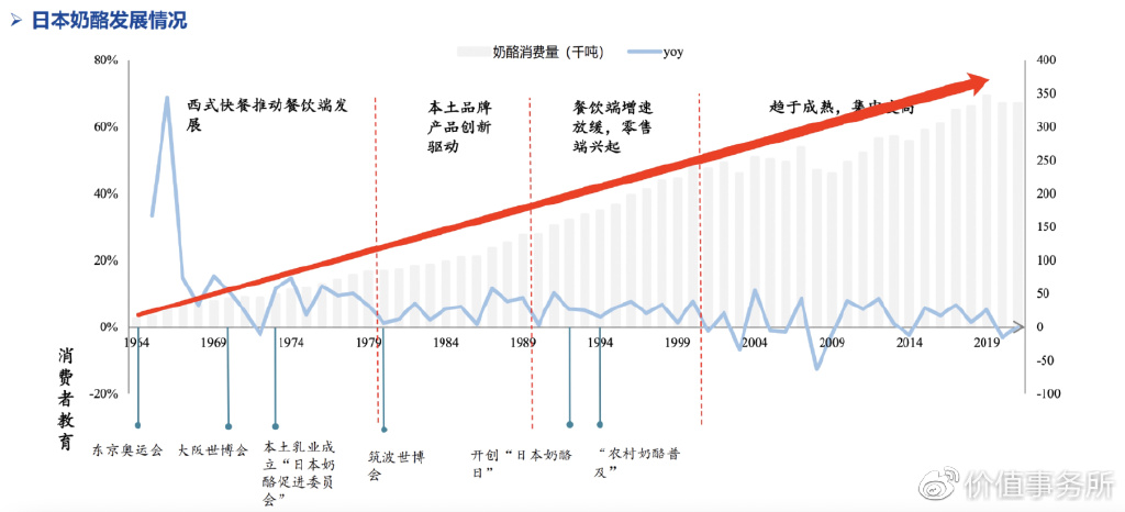 欧美喜欢吃奶酪已经不用多说了,毕竟奶酪就是从他们那传过来的,他们的年人均奶酪消费量居然可以超过10kg(相当于一个人一年要吃近30包妙可蓝多的450g装马苏里拉芝士,一个月一个人就要干掉两包多,简直恐怖),那么和我们饮食、文化更为相近的日本基本可以做参考。