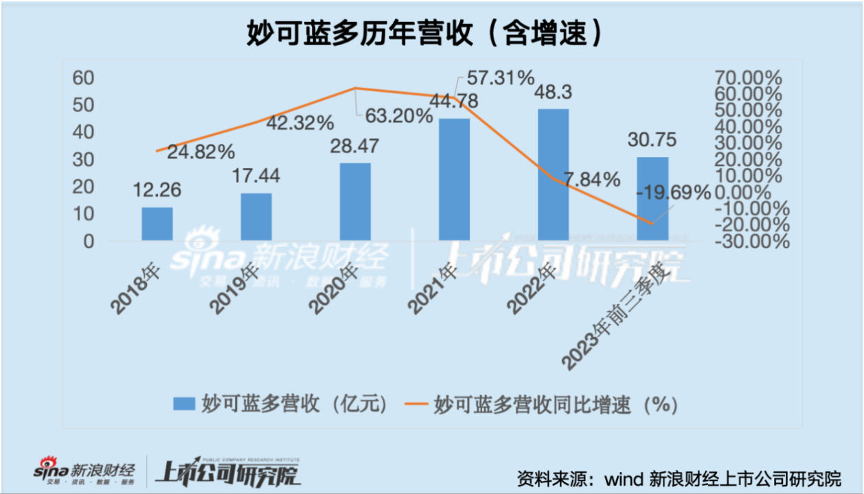从基本面看,妙可蓝多的净利润于2021年见顶,营收于2022年见顶,之后便开始下降。