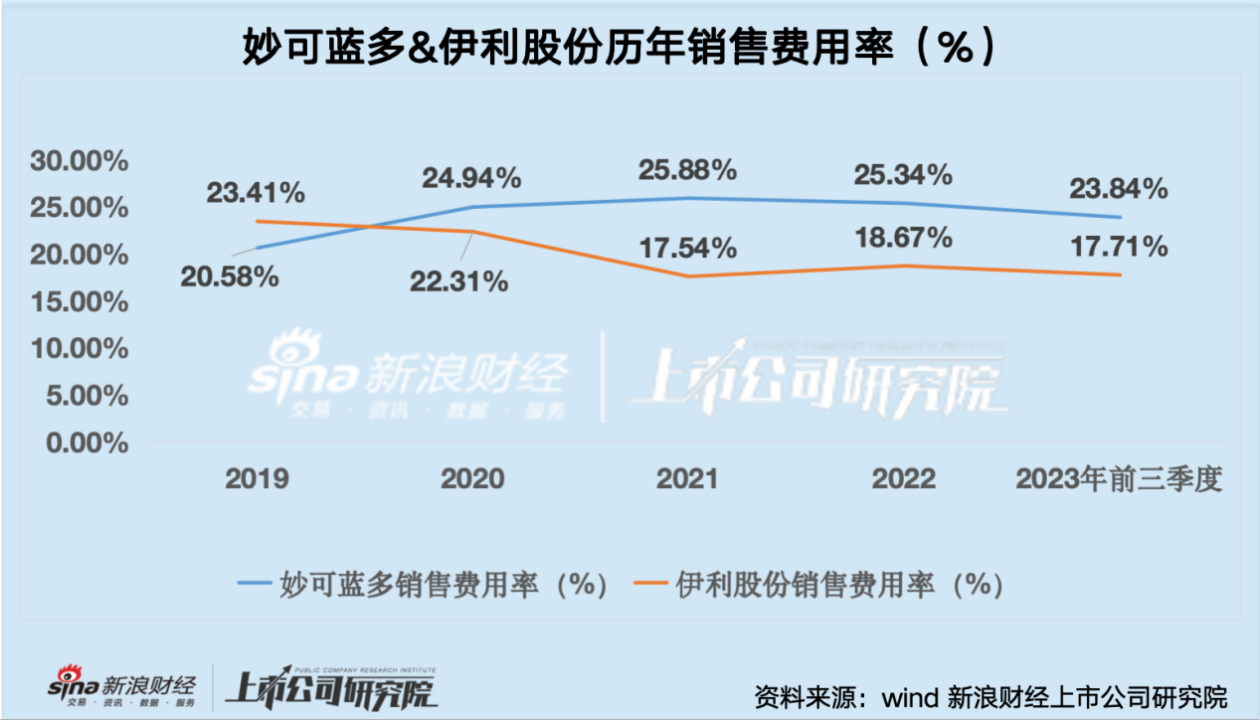 妙可蓝多曾多次在其报告中提到其营销策略,声称与“经销商、大型商超、便利店、母婴店等渠道伙伴,共同搭建了多维协作、纵深发展的全国销售网络”,最大化扩展其影响力。随之带来的便是其高昂的销售费用。