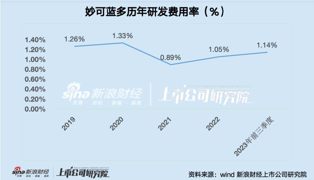 从图中可以看出,妙可蓝多常年的研发成本只占其总营收的1%左右。对于妙可蓝多来说,轻研发,重营销,也使得其在产品高度同质化的奶酪市场并未树立自己的优势。