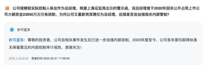 2018至2019年,柴琇因违规理财、关联借款未披露被上海证监局警示,又因挪用公司2.4亿元资金为家人控股的企业还债,导致公司三个季度财报虚假记载,被监管立案。柴琇于2020年4月辞去总经理职务并归还资金,但上交所调查至今未结。