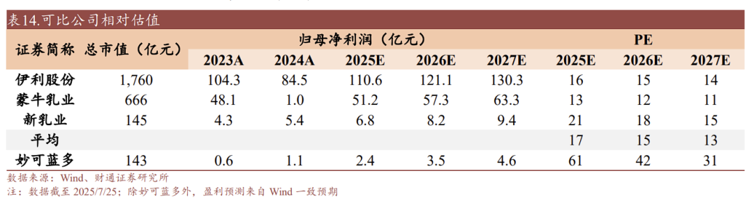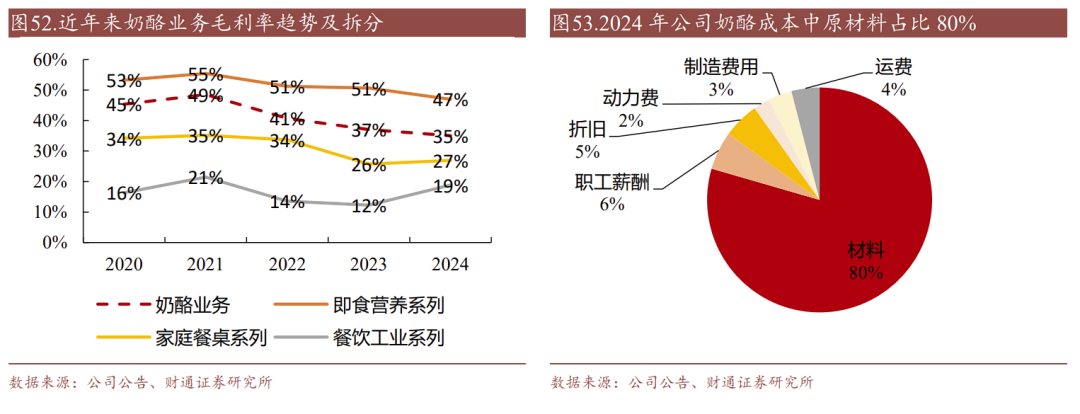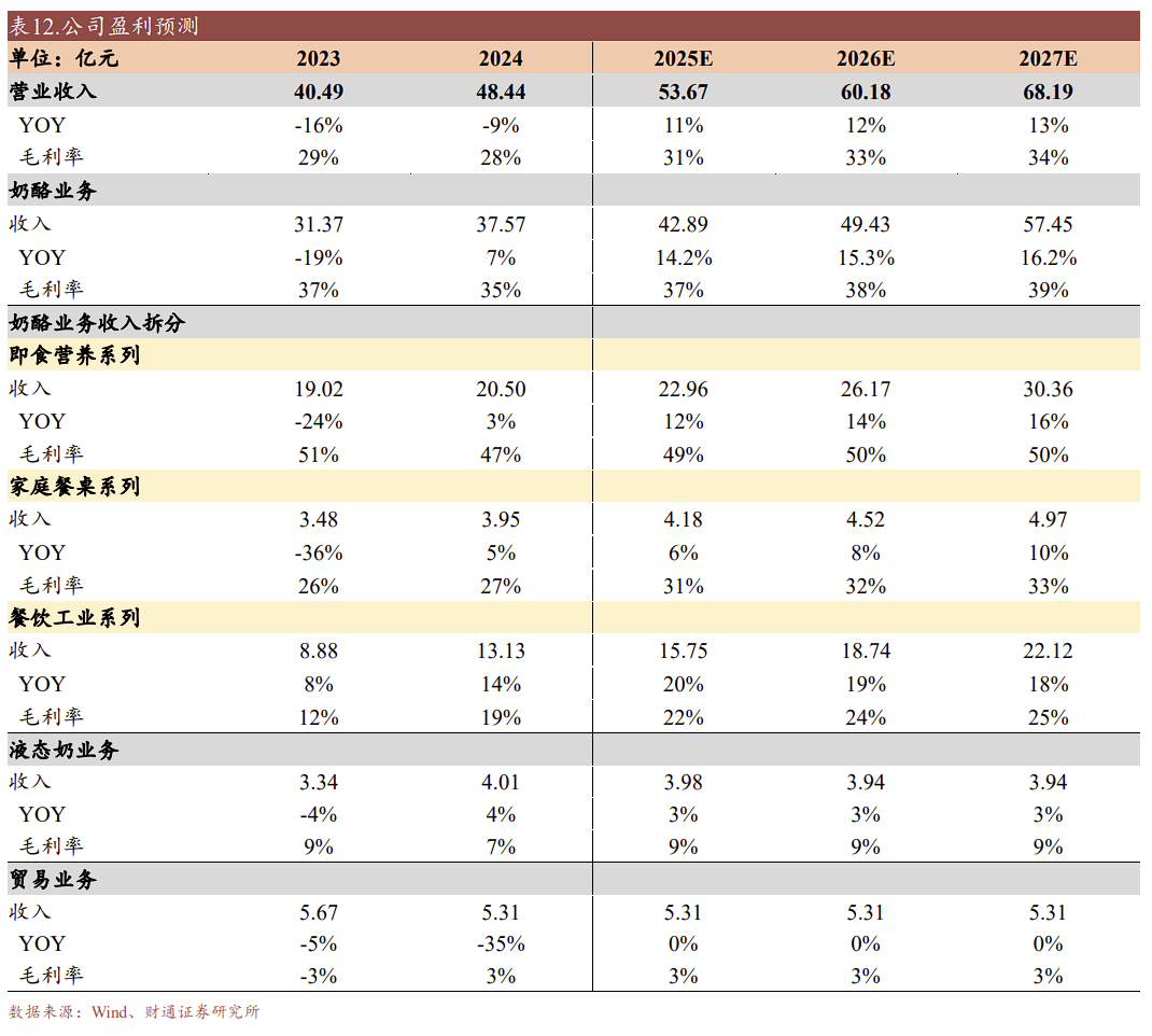 2)利润弹性释放潜力:2025年原奶价格短期或仍处低位,公司积极采用国产原奶替代进口干酪,成本改善逻辑强。同时费用端积极降费增效,毛销两端都有增利弹性。