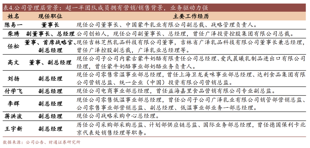 管理团队背景丰富,业务导向。公司高管团队背景多元化,除原有创始团队外,原蒙牛奶酪事业部负责人正式入驻公司高管团队,同时公司通过市场化招聘引入多位具有快消企业背景的副总经理。9位高管中,5位具备资深的营销工作背景,业务驱动力强。同时公司决策更扁平化,B、C端负责人直接参与业务决策,市场响应周期缩短,为BC双轮驱动筑牢根基。整体表现年轻化、专业化、多元化,遵循“老中青结合、业务导向”原则,为百亿元营收筑牢组织基础。
