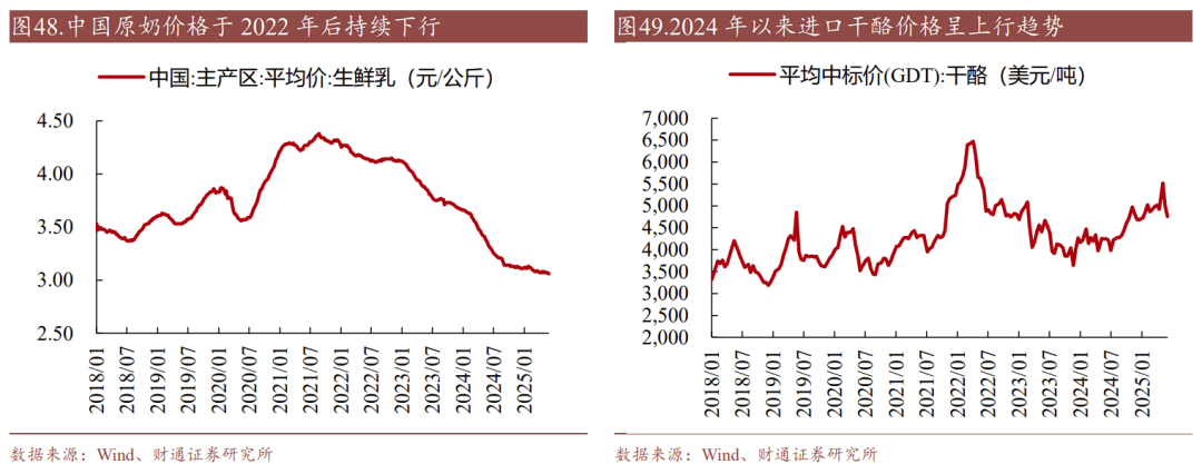 2022年以来受行业供给过剩影响,原奶价格开始显著下行,当前原奶价格处于3~3.1元/公斤的低位,乳制品企业迎来成本端红利期,以国产原奶为原材料生产干酪开始逐渐显现出成本优势。