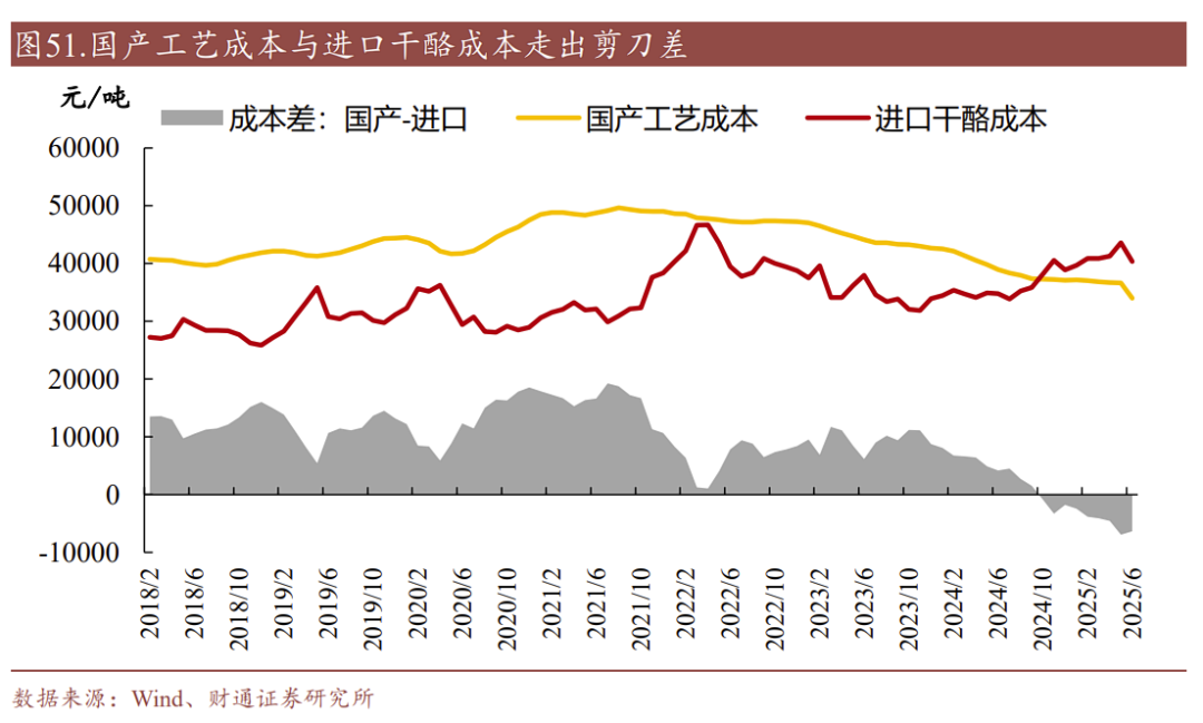 伴随原奶价格走低及人民币汇率下行,经测算进入2025年后国产工艺生产奶酪的成本与进口干酪成本之间于走出剪刀差,国产工艺成本优势开始凸显,当前是进口干酪成本的80~90%。对于公司而言,凭借蒙牛成熟且规模化的采购供应链体系,原奶采购价格往往可以做到低于平均市价,这将进一步压低国产工艺成本,预计公司通过国产工艺替换可实现单吨奶酪原材料成本达到进口干酪成本的7成左右。