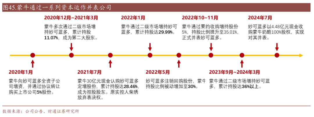 为避免同业竞争,公司于2024年7月现金收购蒙牛奶酪100%股权,实现对蒙牛奶酪资产的整合。