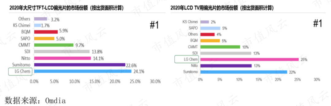 公司收购的LG化学偏光片业务从2013年起已成为行业龙头,2020年占据约25%的全球市场份额,排名全球第一。