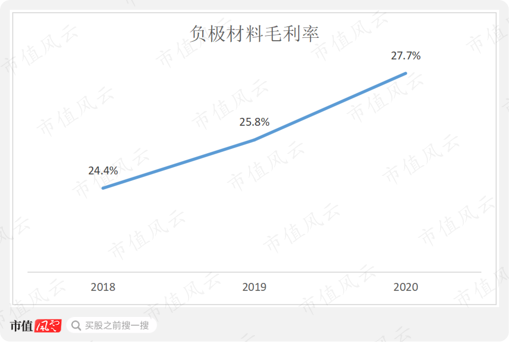 原材料供应和石墨化加工的成本得以保障,叠加产品结构优化和规模效应显现,公司负极材料毛利率不断提高,从2018年的24.4%提升至2020年的27.7%。