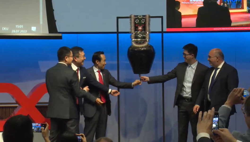 7月28日晚9点(瑞士时间7月28日下午3点),瑞士证券交易所正式启动“中瑞股市互通”的 GDR 部分,作为首批中国公司之一,杉杉股份GDR正式登陆瑞交所。中国驻瑞士大使王世廷、瑞交所Tom Zeeb先生(Head Exchanges)出席仪式,杉杉股份董事长郑永刚等中国公司代表出席仪式并发言。同一时间,杉杉科技董事长李凤凤在上海证券交易所同步敲锣。