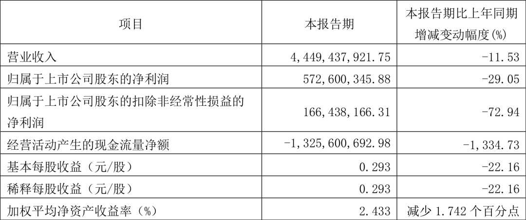2023年第一季度杉杉股份实现营业总收入44.49亿元,同比下降11.53%;归母净利润5.73亿元,同比下降29.05%;扣非净利润1.66亿元,同比下降72.94%。