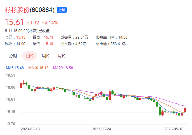 截止到今天收盘,杉杉股份最新市值为353.41亿元人民币。