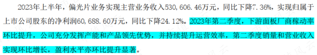 半年报还显示,偏光片业务第二季度销量和营业收入均实现环比增长,盈利水平也显著提升。