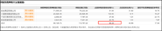 据公告显示,杉杉控股被冻结/标记股份数量为218,202,844股,占公司总股本的9.68%;杉杉集团被冻结/标记股份数量为614,024,072股,占公司总股本的27.25%。